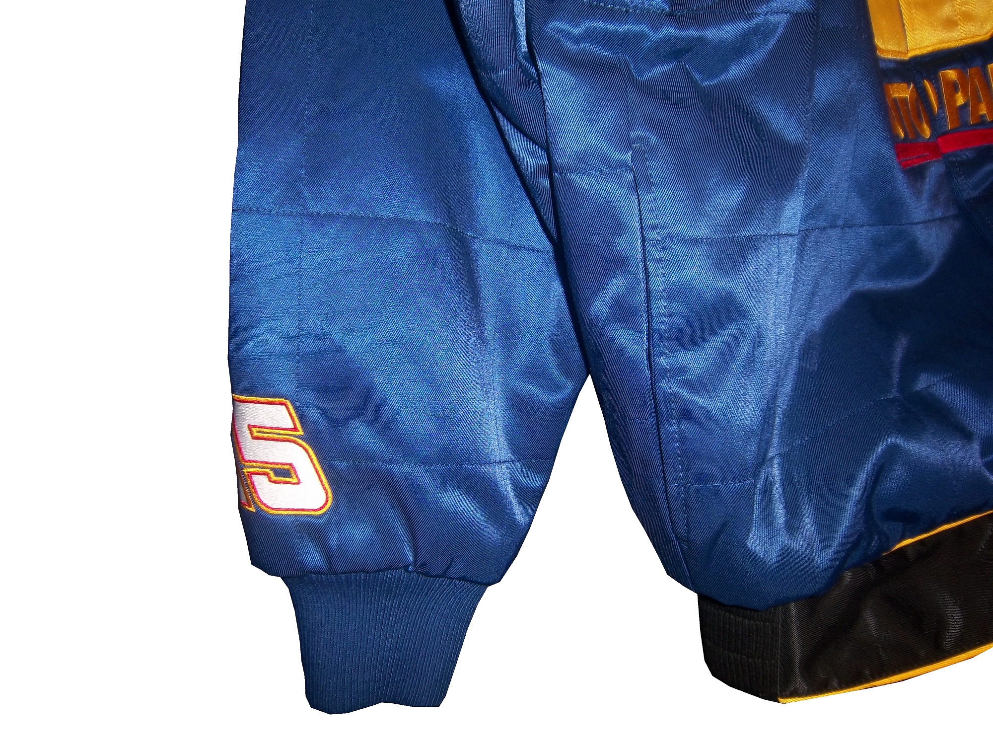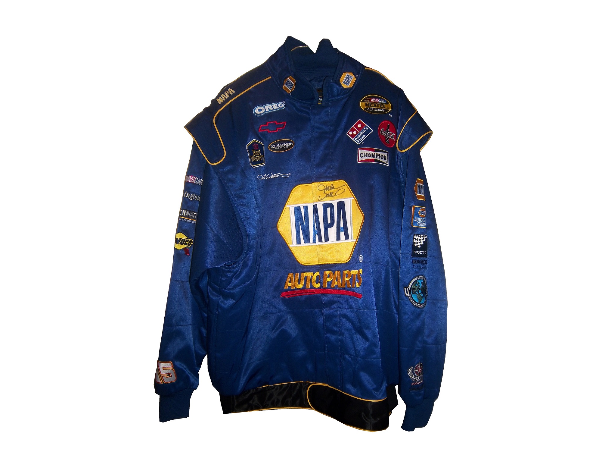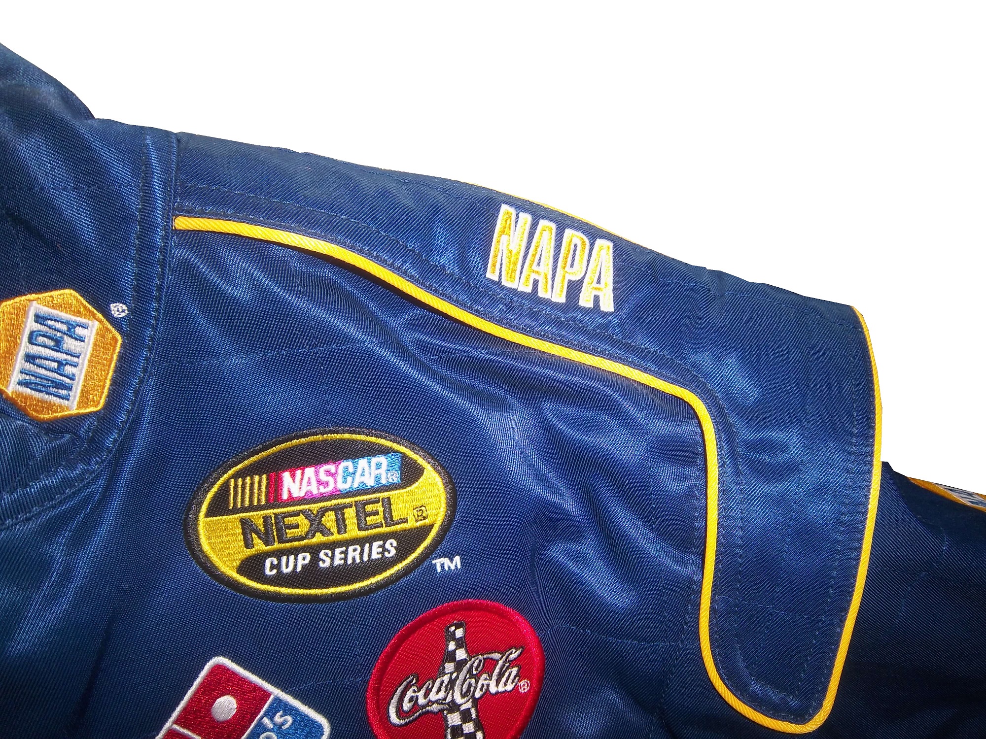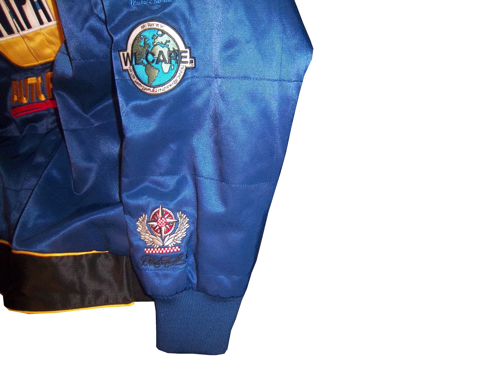 I picked up this very spiffy Michael Waltrip autographed jacket base on his 2004 driver suit. This jacket is notable in that it is very accurate when compared to his suit.