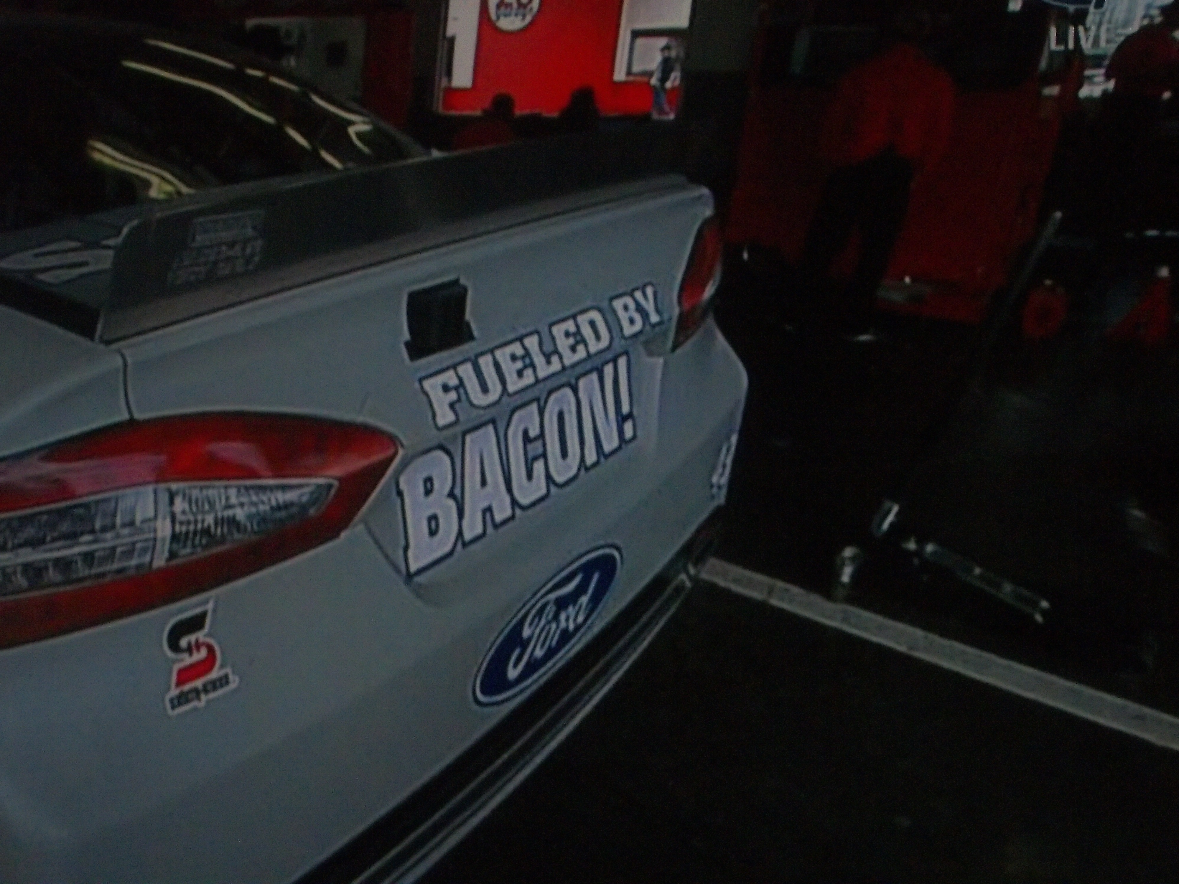 Dave Blaney #77 Plinker Arms Ford Fusion I would love for the side design to be more simplified. It is a decent scheme, but the door design is too busy, and it is very distracting. I give this scheme a C-, bad design, good color scheme.