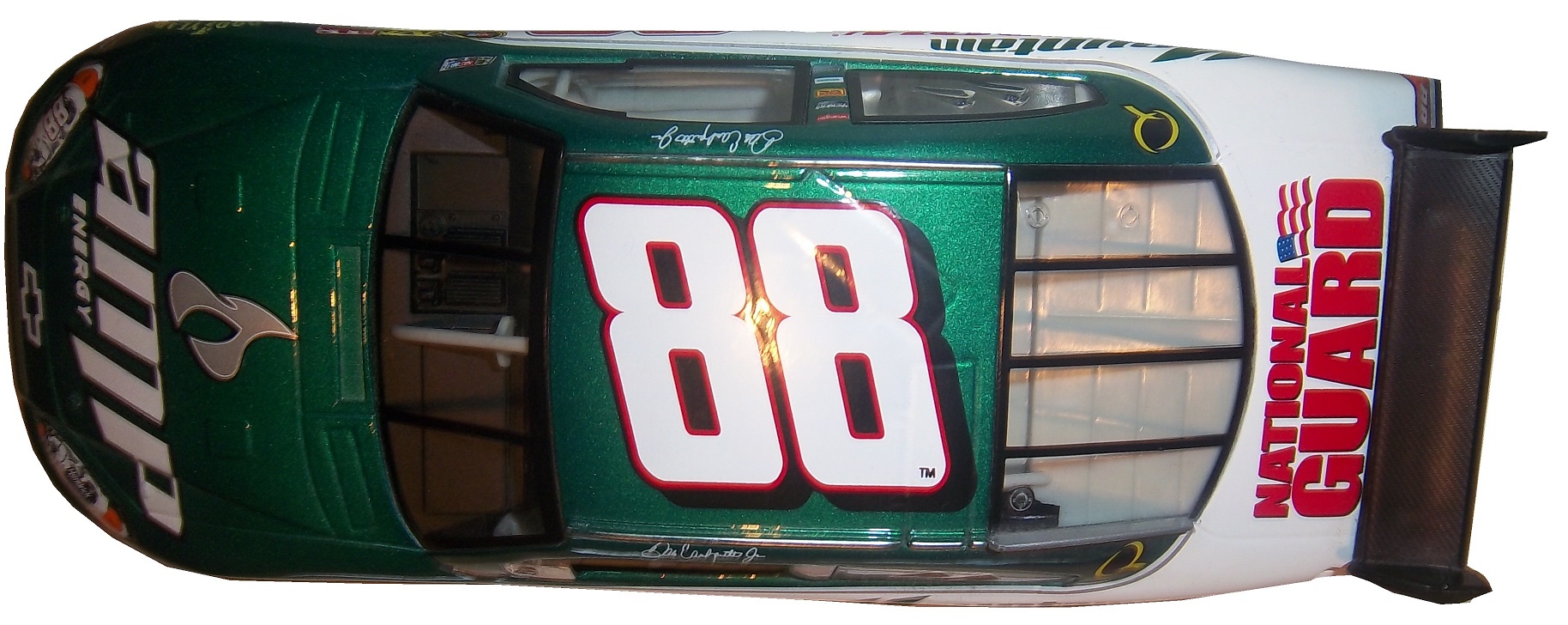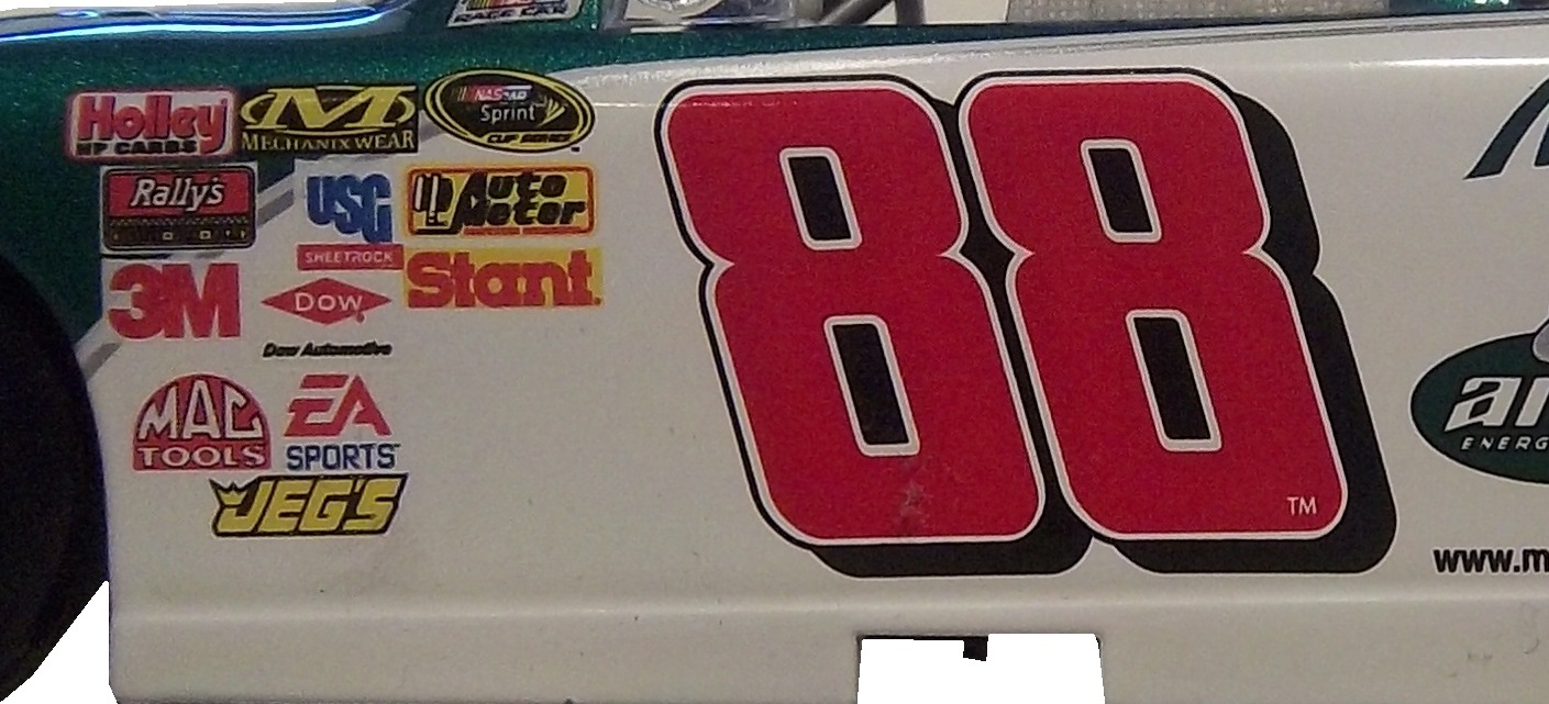 Whereas this Dale Earnhardt Jr. die cast, this one a children’s toy has a plastic window net,
