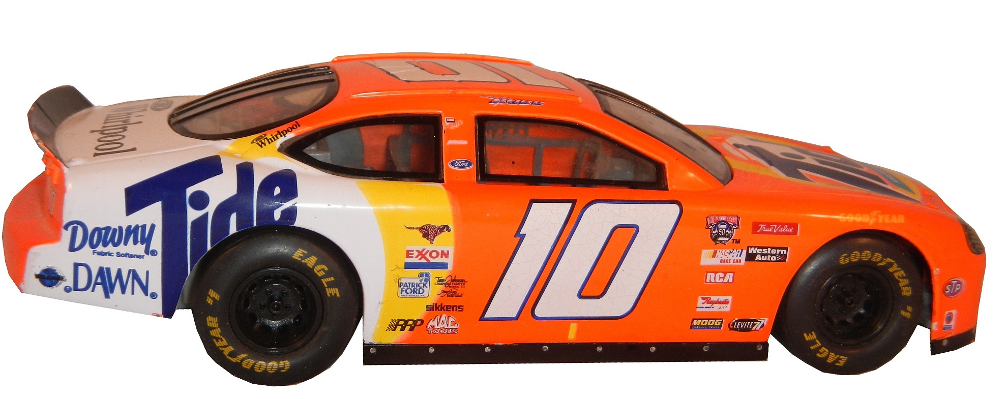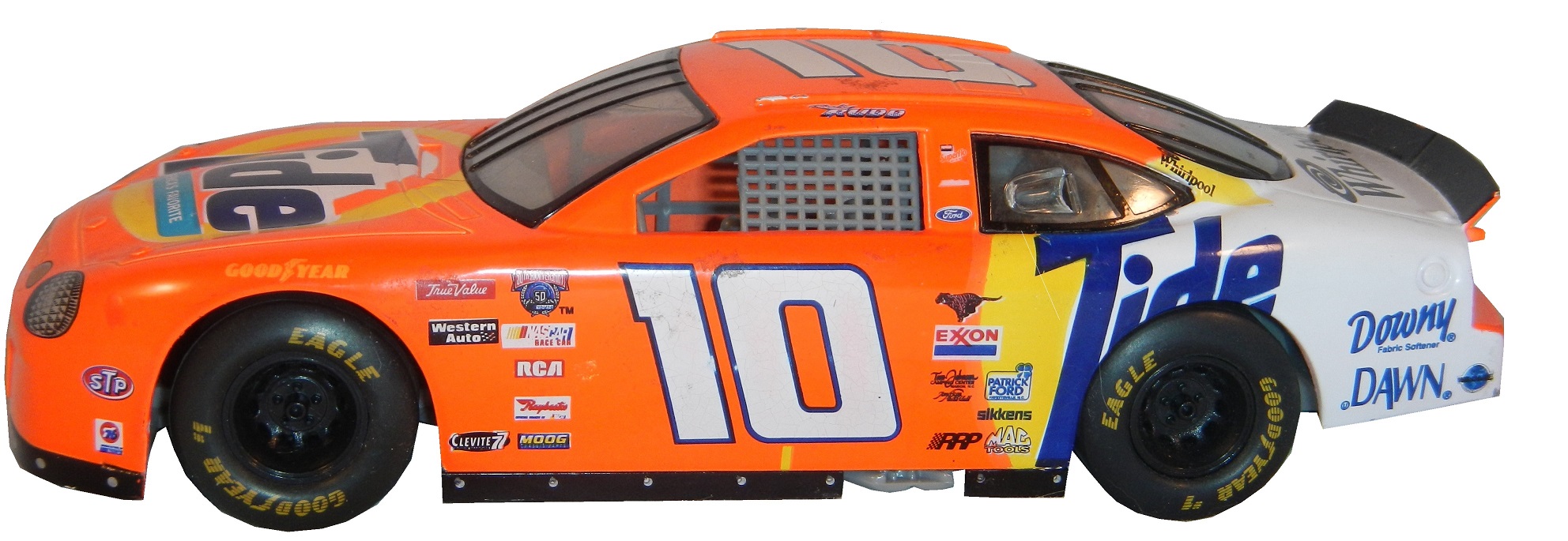 Like The Family Channel and Kodiak, I sometimes buy racing stuff because it is from the Tide Ride. Started in 1987, the “Tide Ride” was a staple in the Sprint Cup Series, and was used heavily until 2006, when the sponsorship left PPI Racing, and wasn’t seen in NASCAR since. Some of the most memorable Tide Ride moments were the 1989 Daytona 500 where Darrell Waltrip did the Icky Shuffle in victory lane, the 1997 Brickyard 400 won by Ricky Rudd, and the 2003 Carolina Dodge Dealers 400 which is tied as the closest race in NASCAR history, won by Ricky Craven over Kurt Busch.