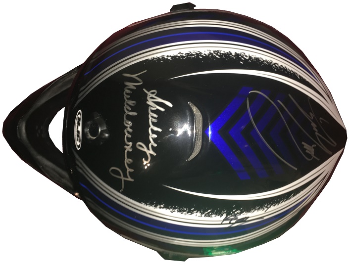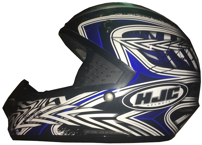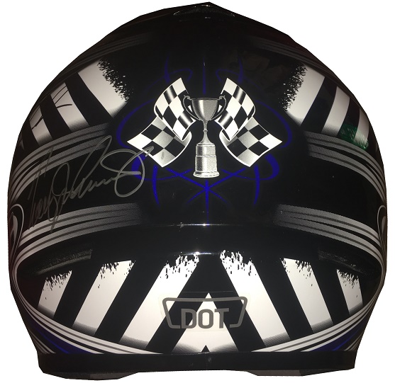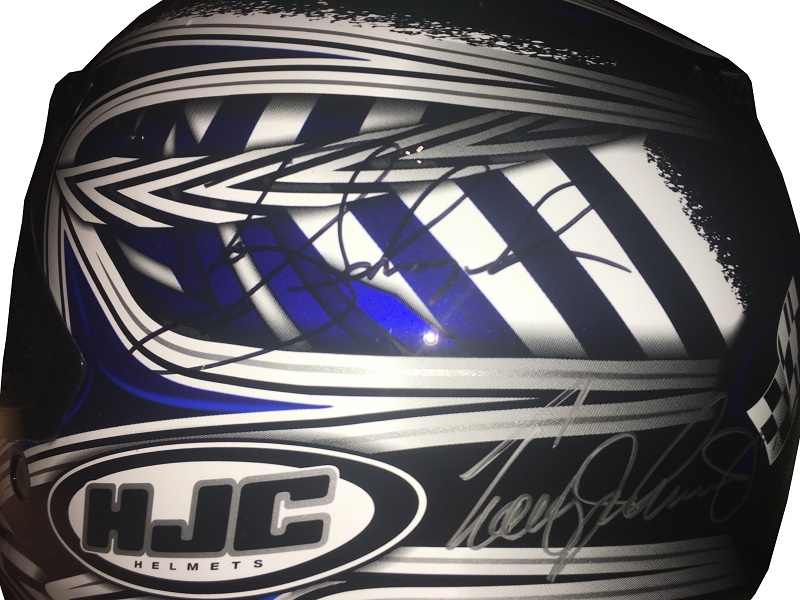 It’s not uncommon for people to bring items to sports events to sign. Fans bring baseballs to batting practice to get autographs. I’ve done this myself on several occasions. I’ve also brought items to car shows and conventions to get signed. A few years ago, I brought this motorcycle helmet to the NHRA Route 66 Nationals. It was signed by Robby Gordon when I bought it, I still have it and it’s in great condition.