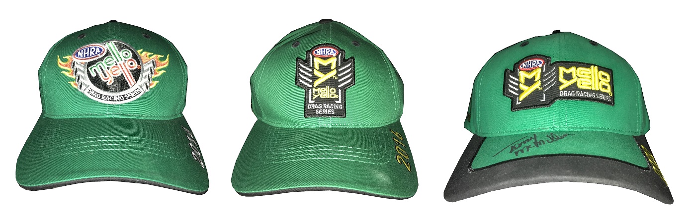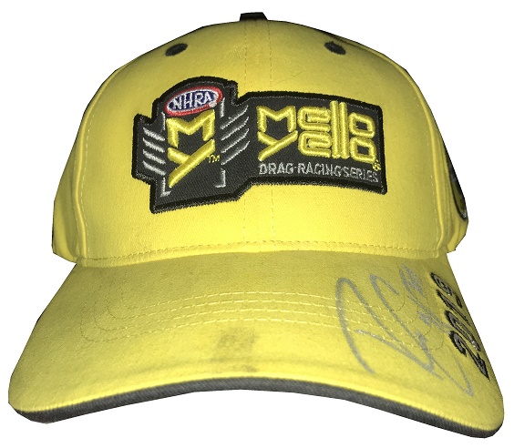 Erica would go on to win the 2014 Pro Stock Championship, and one of her crew was issued this white NHRA Mello Yello Drag Racing Series Championship cap. The cap has some changes to the formula, with the year and the side GO ON YELLO logos are in black. Erica was kind enough to autograph the cap at the Route 66 Nationals.