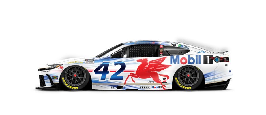 John Hunter Nemechek #42 Mobil 1 Toyota Camry-In a vacuum this scheme would get an F, but compared to last year, this gets a D-, as it is a vast improvements.