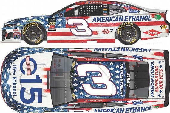 Austin Dillon #3 American Ethanol Patriotic Chevy Camaro-New scheme for 2018, American Flag motif on sides. A