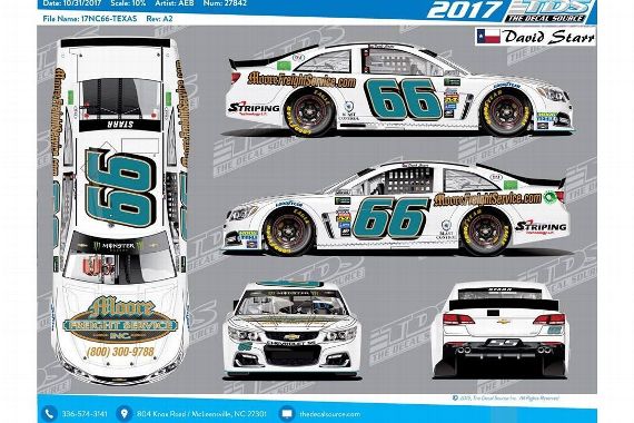 Michael McDowell #95 Tommy Williams Drywall Chevy SS-New sponsor for 2017, drywall motif with blue lettering on sides and hood. A