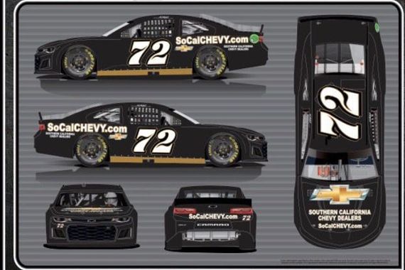 Reed Sorenson #77 Aquesta Bank Chevy Camaro-New sponsor for 2019, black with fading stripes on sides. A