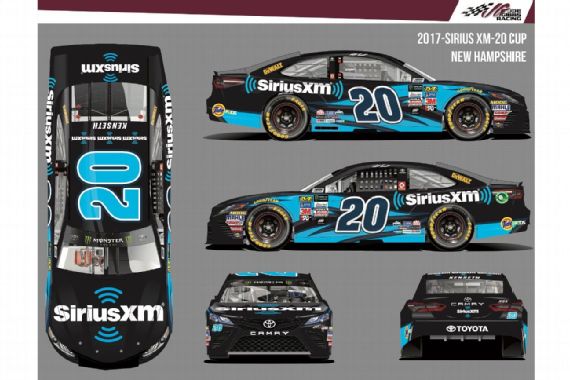 Erik Jone #77 Sirius/XM Toyota Camry-New sponsor for 2017, black with blue and silver designs across whole car. F
