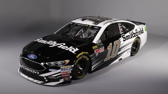 Aric Almirola #10 Smithfield Foods Ford FusionNew sponsor for 2018, black and white with slash patterns on sides. A