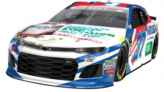 Michael McDowell #95 K-LOVE Chevy SSNew scheme for 2017, same colors, but with stripes across front half of sides. A