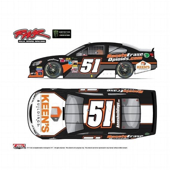 Timmy Hill #51 Keen Buildings/Race to Erase Opioids Chevy Camaro-New scheme for 2018, same as Keen Buildings, but with Race to Erase Opioids on sides. D+