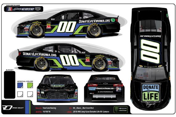 Joey Gase #00 Nevada Donor Network Chevy Camaro-New scheme for 2018, same as #55. A-