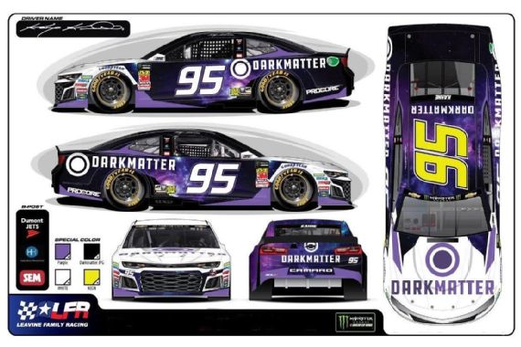 Kasey Kahne #95 Dark Matter Chevy Camaro-New sponsor for 2018, white with space motif on sides. A