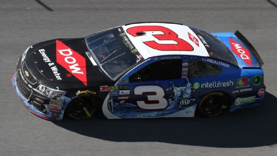 Austin Dillon #3 Dow Silastic Silicone Elastomers Chevy Camaro-New sponsor for 2018, white with liquid motif on front, and yellow field motif on rear. A