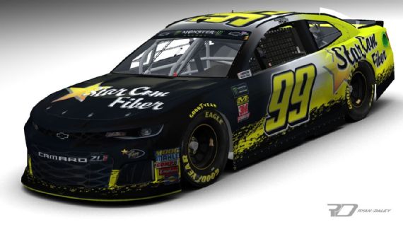Landon Cassill #99 St Charles Glass and Glazing Chevy Camaro-New sponsor for 2018, black sides, white hood and roof. A