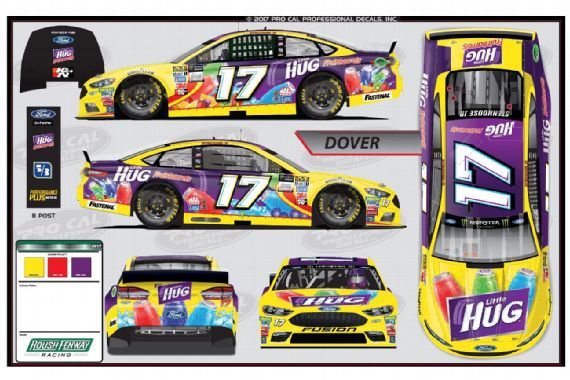 Matt Kenseth #6 Wyndham Rewards Patriotic Ford Fusion-New scheme for 2018, blue front, patriotic stripe motif in center, white rear. C-