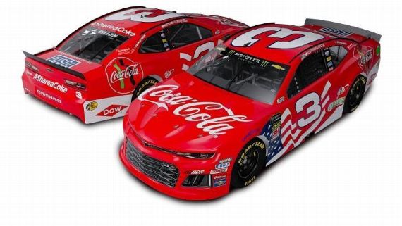 Austin Dillon #3 Coca-Cola Chevy Camaro-New sponsor for 2018, red with American Flag motif on sides. A