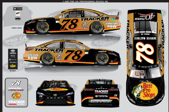 Martin Truex Jr. #78 Bass Pro Shops/Tracker Boats Throwback Toyota Camry-New scheme for 2017, commemorating the 40th anniversary of the introduction of tracker boats. B-