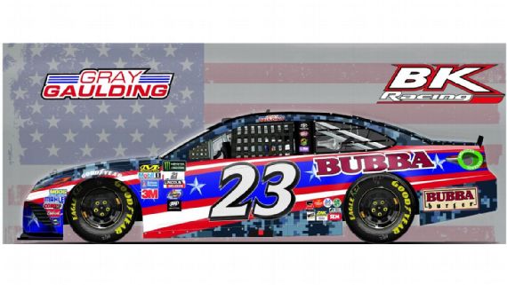 Gray Gaulding #55 US First Responders Association Chevy SS-New sponsor for 2017, red and white, similar to Bodine throwback, with US First Responders logo on hood. A