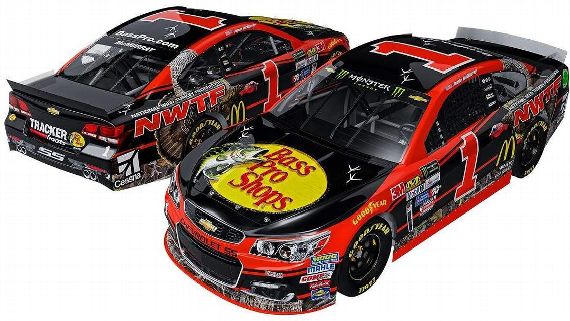 Martin Truex Jr. #78 Bass Pro Shops Toyota Camry–New scheme for 2017, red and black stripes with a camo stripe at the bottom. C-