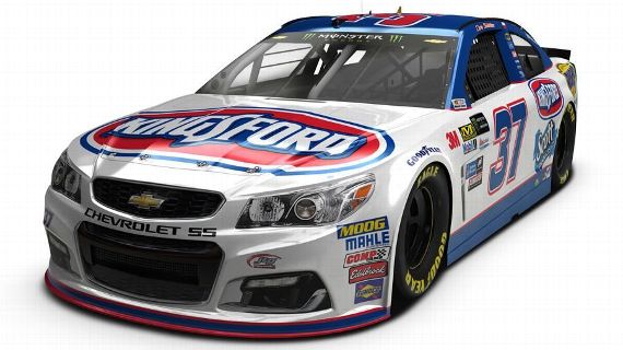 Michael McDowell #95 K-LOVE Chevy SS–New scheme for 2017, same colors, but with stripes across front half of sides. A