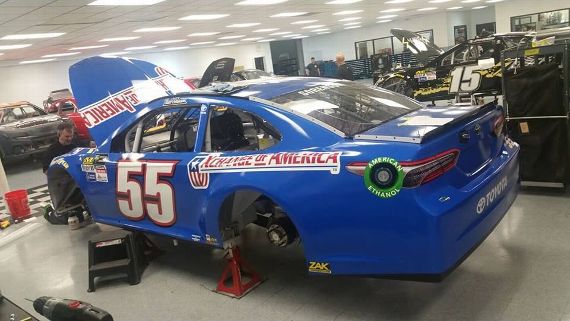 Corey LaJoie#83 Champion Machinery Toyota Camry-New sponsor for 2017, white with blue checkered flag on front, and blue stripes on sides. C