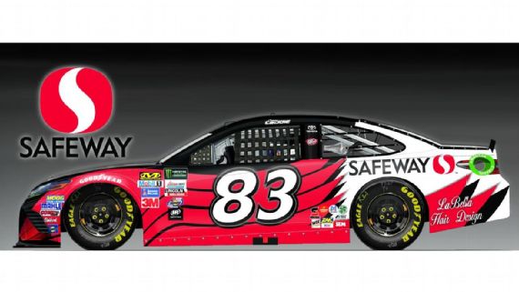 Corey LaJoie #83 Safeway Toyota Camry-New sponsor for 2017, black with red Safeway designs on sides, and white rear. F