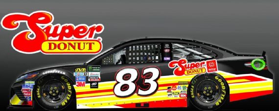 Brett Moffitt #83 Super Donut Toyota Camry-New sponsor for 2017, black with red, yellow, and white stripes on sides. F