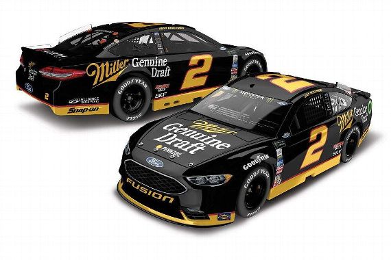 Brad Keselowski #2 Miller Lite Veterans Ford Fusion-New scheme for 2017, same as regular Miller Lite scheme, but with names of deceased veterans on side. A