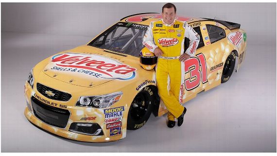 Ryan Newman #31 Velveeta Shells and Cheese Chevy SS-New sponsor for 2017, yellow with shells and cheese motif across car. C-